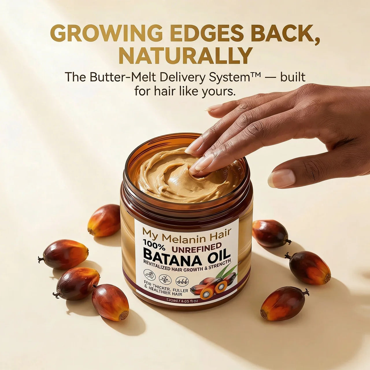 Our Batana Oil is traditionally sourced and unrefined, with no harsh chemicals or fillers.